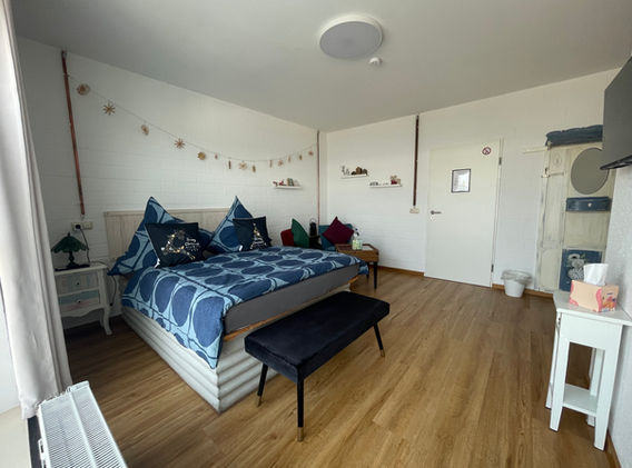 Unser gemütliches Zimmer bietet dir alles, was du für einen entspannten Aufenthalt brauchst. Es verfügt über ein eigenes Bad mit kostenlosen Pflegeprodukten und einen Haartrockner, damit du dich nach einem langen Tag frisch machen kannst. Für Unterhaltung sorgt der Smart TV, und natürlich kannst du auch unser kostenloses WLAN nutzen. Das Bett hat eine Größe von 1,40 x 2,00 m – perfekt für einen erholsamen Schlaf.